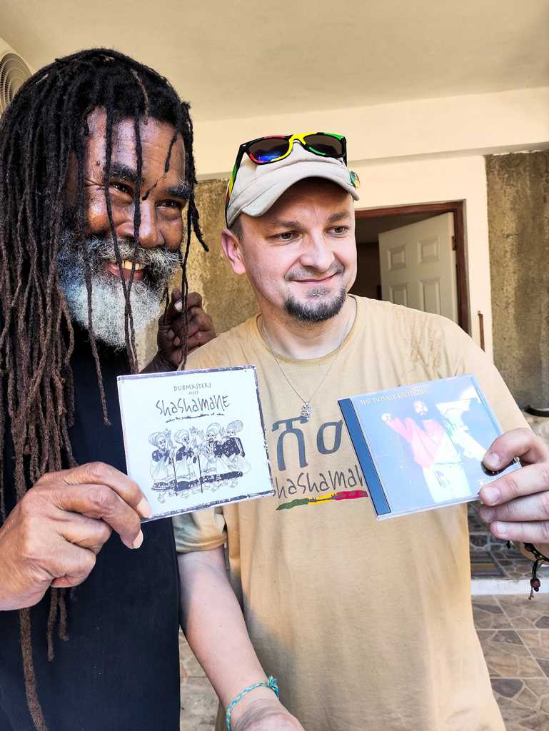 Ruszyliśmy na łowy, a niektórzy z nas zaopatrzyli się w prawdziwe „białe kruki” , bo jak inaczej określić płytę Twinkle Brothers „Live in Warsaw” ,czy praktycznie niedostępną w Polsce „Higher Heights” z Tebuniami. Po częściowym zaspokojeniu muzycznych zakupów przyszedł czas na autografy i prezenty. Miałem przyjemność przekazać Normanowi krążek Shashamane, a to już jego drugi w kolekcji, bowiem graliśmy wspólnie  w Ostródzie, gdzie dostał „Origin&Culcha”. Później jeszcze jedno spotkanie miało miejsce w Wiśle. Po krótkiej sesji zdjęciowej wyruszyliśmy do Port Kaiser w pobliżu miejscowości Alligator Pons w regionie Saint Elizabeth. Tam odbywa się legendarny festiwal Rebel Salut, którego twórcą jest słynny jamajski artysta – Tony Rebel.
