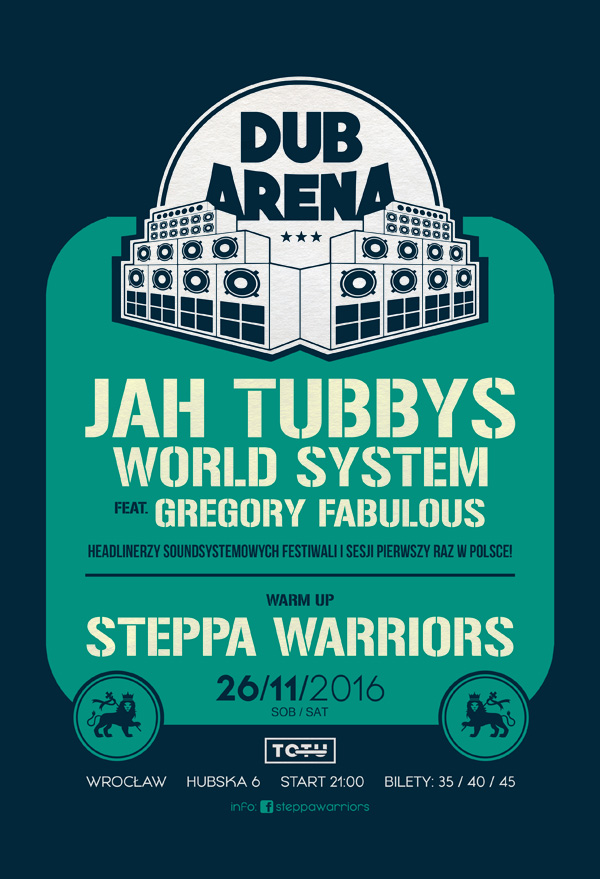 26 listopada we Wrocławiu odbędzie się piąta edycja cyklu Dub Arena. Wystąpią Jah Tubbys World System, Steppa Warriors oraz Cool Operator Sound System.