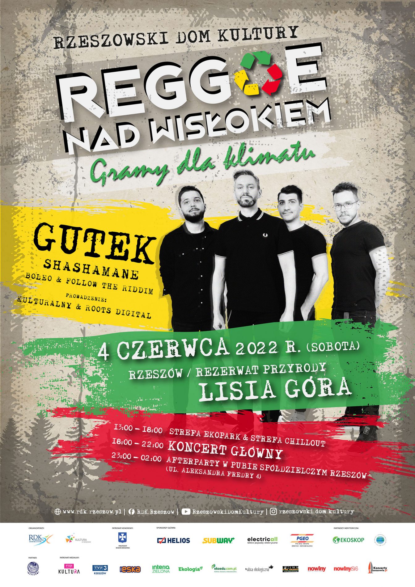 To już druga edycja „Reggae nad Wisłokiem”, której przyświeca proekologiczna misja wyrażona w aktualnym, przewodnim haśle festiwalu – „Gramy dla klimatu”. W tym roku wydarzenie odbędzie się w nowym miejscu, czyli terenie zielonym przy rezerwacie przyrody Lisia Góra w Rzeszowie. Główną atrakcją festiwalu będzie koncert główny, podczas którego wystąpią Boleo & Follow The Riddim, Shashamane oraz gwiazda wieczoru – Gutek. O dobry klimat imprezy zadbają Kulturalny i Roots Digital.
