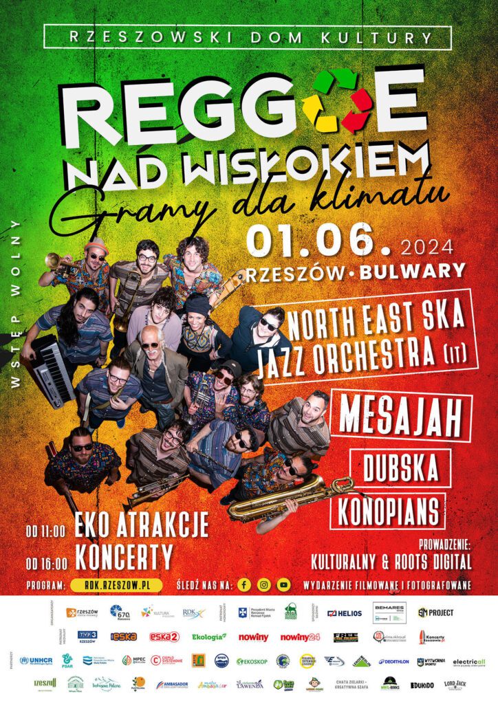 Rzeszowski Dom Kultury zaprasza na 9. Ogólnopolski Festiwal „Reggae nad Wisłokiem – Gramy dla klimatu”, który odbędzie się w sobotę 1 czerwca 2024 roku w Parku Kultury i Wypoczynku