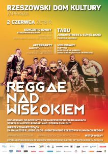 Rzeszowski Dom Kultury zaprasza na czwartą edycję imprezy „Reggae Nad Wisłokiem”, która odbędzie się 2 czerwca 2018 roku w Rzeszowie. W programie Koncert Główny na rzeszowskich Bulwarach oraz całonocne Afterparty w Klubie Vinyl. Wydarzenie poprzedzi Nighskating Rzeszów w klimatach reggae, który odbędzie się 24 maja 2018 roku na ulicach miasta. Udział we wszystkich wydarzeniach jest bezpłatny.