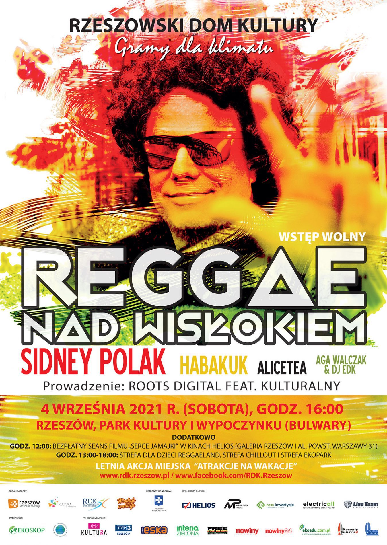 Rzeszowski Dom Kultury zaprasza fanów muzyki reggae z całej Polski oraz wszystkich mieszkańców Rzeszowa na 6. Ogólnopolski Festiwal „Reggae nad Wisłokiem”, który odbędzie się w sobotę 4 września 2021 roku w Parku Kultury i Wypoczynku na rzeszowskich Bulwarach.